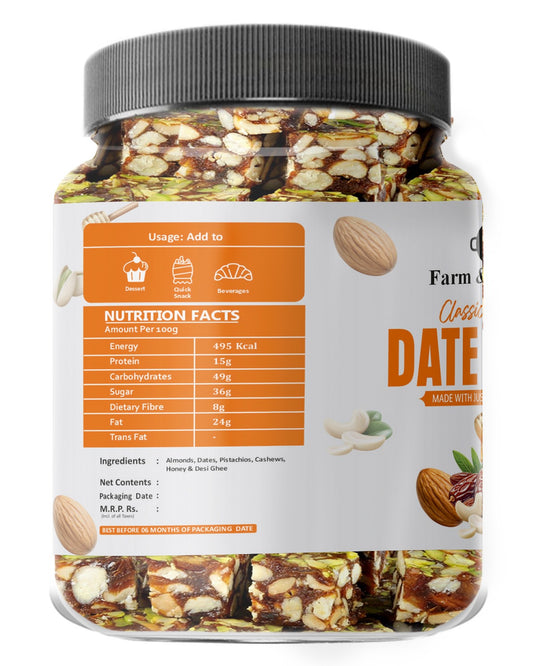 Farm & Farmers Classic Delight Date Bites 360gm | Dates Barfi Made with Dates, Dry Fruits, Honey and Desi Ghee | Healthy Snacks Sweets,Gluten Free, No Added Sugar, Perfect for Gifting