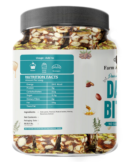 Farm & Farmers Peanut Delight Date Bites 180gm | Dates Barfi Made with Dates, Dry Fruits, Honey and Desi Ghee | Healthy Snacks Sweets,Gluten Free, No Added Sugar, Perfect for Gifting