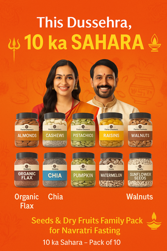 10 ka SAHARA – Premium Navratri Fasting Pack | 10 Jars of Seeds & Dry Fruits (100g / 250g Each)