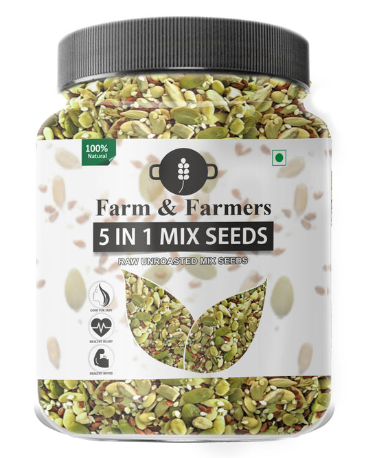 Farm & Farmers Healthy Combo of Organic Flax, Chia, Pumpkin, Watermelon, Sunflower Seeds Mix Superfoods for Eating Rich in Antioxidants Vitamins & Minerals (5 Pack Seeds Mix - 250 Grams Each)