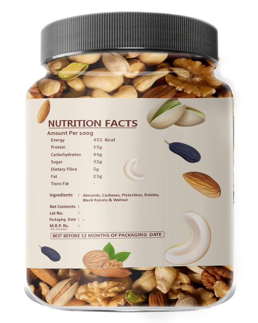 Farm & Farmers Mix Dry Fruits – Healthy Blend of Almonds, Cashews, Walnuts, Pistachios, Raisins & More – Rich in Nutrients, Perfect for Snacking & Gifting – 100% Natural, No Added Preservatives – 250g Jar