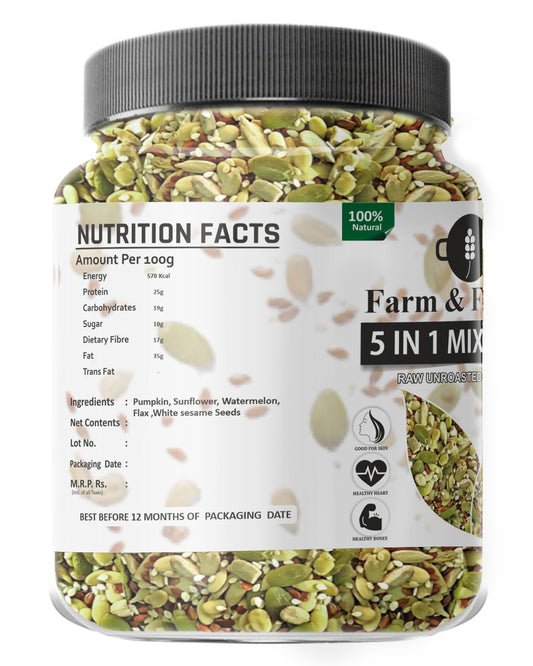 Farm & Farmers Healthy Combo of Organic Flax, Chia, Pumpkin, Watermelon, Sunflower Seeds Mix Superfoods for Eating Rich in Antioxidants Vitamins & Minerals (5 Pack Seeds Mix - 250 Grams Each)