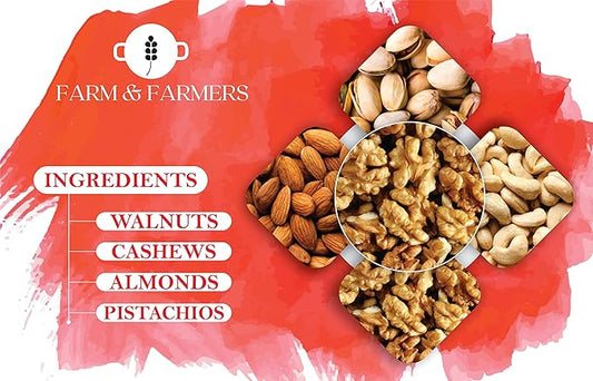 Farm & Farmers Almond, Cashew, Wallnut & Pista Dry Fruit Gift Hamper Pack Set Gift Box for Diwali | Dry Fruits Gifting Boxes | Festivals & Other Gifting Ocassion (450gm, Pack of 1)