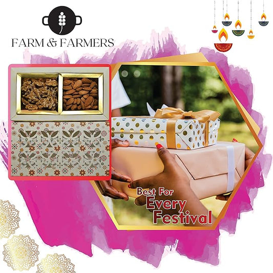 Farm & Farmers Almond, Cashew, Wallnut & Raisins Dry Fruit Gift Hamper Pack Set Gift Box for Diwali | Dry Fruits Gifting Boxes | Festivals & Other Gifting Ocassion (450gm, Pack of 1)