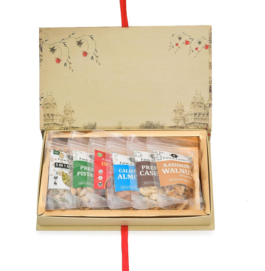 Farm & Farmers Premium Dry Fruit Gift Hamper (Pack of 6 x 80g) – Healthy Diwali & Corporate Festive Gift Box | Assorted Nuts & Dry Fruits for Gifting