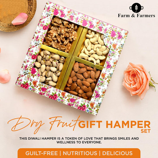 Farm & Farmers Premium Dry Fruit Diwali Gift Hamper | Walnuts, Cashews, Pistachios, Almonds | Healthy Snacks Gift Box for Corporate Gifting & Festive Deepawali Gift (Pack of 4 x 80g)
